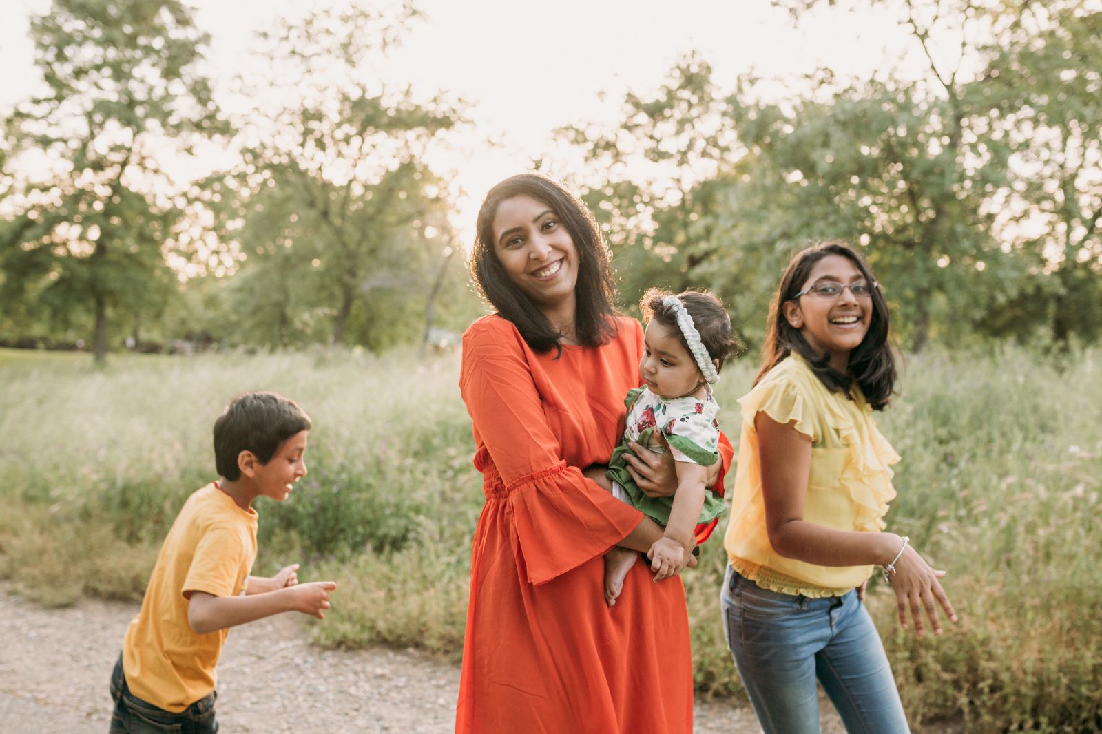 family walking in the countryside
