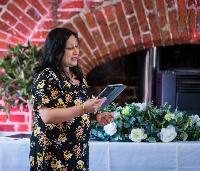 Sonal Dave is a Ceremonies Celebrant, Lady Toastmaster and Professional Public Speaking Expert. Speaking English, Gujarati and basic Hindi, Sonal’s services include symbolic Asian rituals, the sand ceremony and many other symbolic Indian or Western elements.